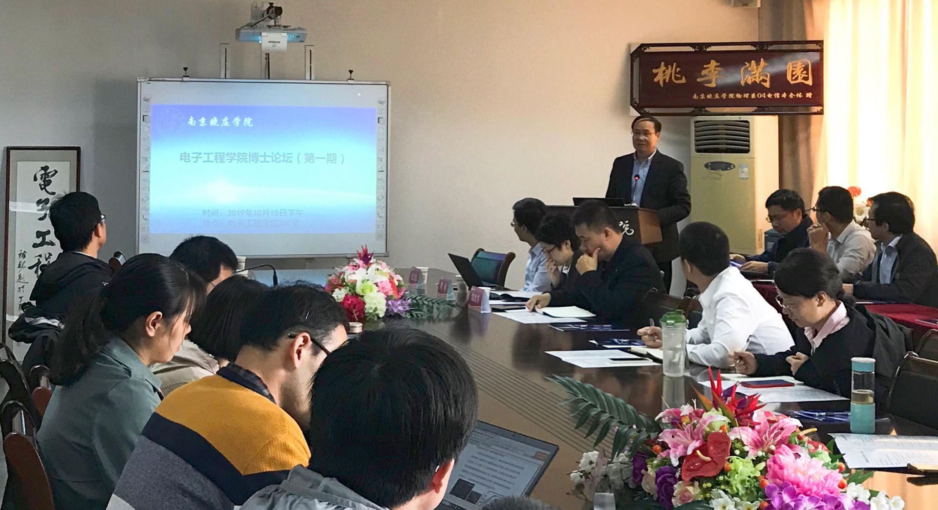 10月15日下午,电子工程学院第一期“博士论坛”成功举行。本次论坛的主题为物理和光电。南京师范大学物理科学与技术学院院长张力发教授、南京大学周林副教授、南京信息工程大学郑改革教授应邀出席论坛。电子工程学院全体博士及相关领域师生出席了论坛。论坛先后由窦瑾教授、张亮博士和熊志刚博士主持。学校科研处张相学教授应邀为论坛致辞。