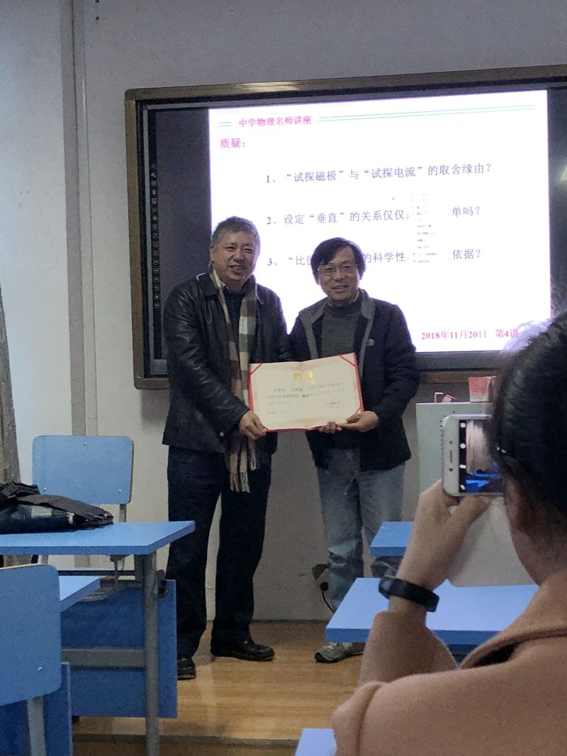 历时四周,四讲的题目分别为《中学物理教师应该思考的几个问题》、《中学物理教师履职的几项基本技术》、《中学物理教师专业成长的几种思考》、《中学物理教师履职的几个示范案例》。朱老师分别从教师职业的性质任务、所必需的基本技术、成长的途径和成功的案例这四个方面讲述了一个成功教师的发展历程。这也是朱老师对自己四十年教师生涯的回顾与总结。