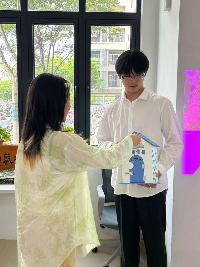 活动伊始,主持人向同学们介绍了“心灵树洞”的由来。其旨在通过匿名书信倾诉、朋辈温暖回复、心理咨询师专业介入三位一体的模式,构建起安全私密的心理疏导渠道。伴随着舒缓的音乐声响起,一张张印有学校特色标志的明信片在同学们手中传递。大家提笔以匿名形式写下近期烦恼、期许或成长感悟,投入树洞形信箱。