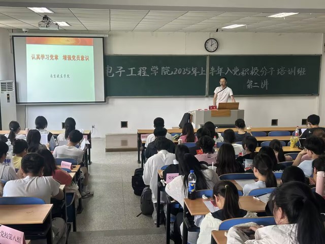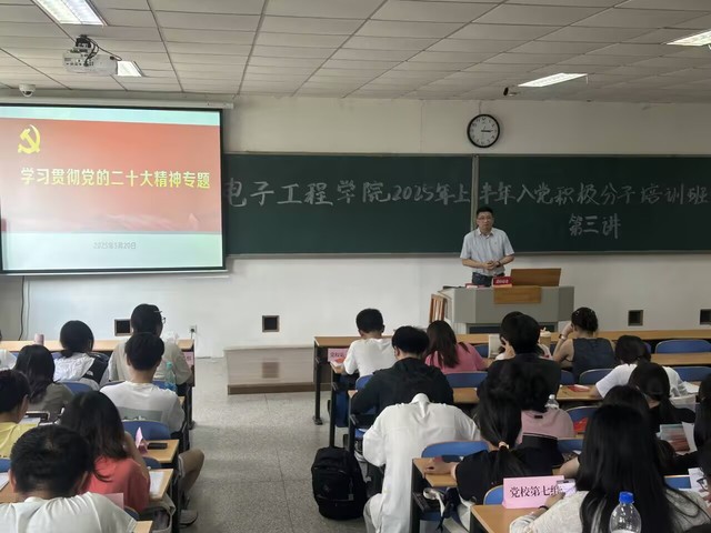 5月20日下午,电子工程学院分党校开展入党积极分子培训班第二讲、第三讲集中授课,分别由马克思主义学院高牟老师和电子工程学院党委书记薛同琦主讲。