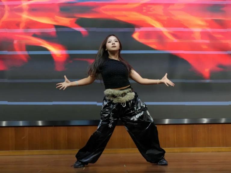 决赛汇聚了全校十位顶尖舞者,赛程紧凑激烈。李欣欣同学在第一轮比赛中自信登场,以一首动感十足的爵士舞点燃全场。凭借出色的首秀,李欣欣同学成功晋级下一轮比拼。