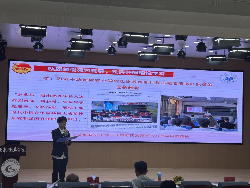 该团支部围绕“深学、明思、躬行、彻悟”四个篇章展开活动。在“深学细悟”篇章,入党积极分子刘一凡带领成员学习习近平西部计划志愿者重要回信精神,重温教育家精神,学习优秀校友扎根乡村的事迹,还深入学习习近平总书记关于人工智能的论述及江苏省人工智能发展行动方案,筑牢思想根基。