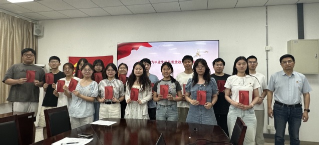 铭记初心使命:重温一次入党誓词。全体毕业生党员面向鲜红党旗,高举右拳,庄严宣誓。“我志愿加入中国共产党……”铿锵誓言既是对入党初心的深情回溯,也是对未来的郑重承诺,激励党员以更饱满的热情和昂扬的姿态奋进新征程。
