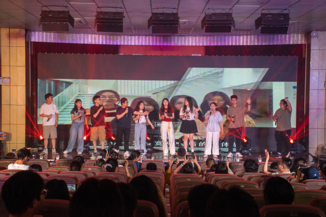 随后,精彩节目轮番上演,诠释了电工院学子的独特风采与深厚情谊:教师代表与通信工程专业江军熠同学共同演唱《一万次悲伤》《昨日青空》等歌曲,唤醒共同记忆,致敬成长的阵痛与青春的纯粹;学院学生党员精心编排的小品《归来仍是少年》展现责任担当与家国情怀;机器人工程专业张玉清同学温暖演绎《Umbrella》,致敬那些风雨同舟的陪伴;物理学师范专业黄睿同学的吉他弹奏《一路向北》、电信专业张文瀚同学的深情《Love Song》、物理学师范专业刘彦森演唱的《我怀念的》,唱响了属于理工科的独特浪漫;物理学师范董备、自动化专业赵梓豪两名同学的《无地自容》释放了青春激情;电工院学生会情景剧《我们的毕业季》生动串联起了大学四年青春的欢笑与汗水;最后2025届全体同学合唱《北京东路的日子》将晚会推向高潮,不舍与祝福溢出会场。