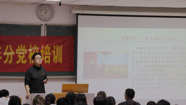 电子工程学院何文秋书记以“不忘初心,砥砺前行”为主题,向我们介绍了中华人民共和国成立70周年的伟大意义,何书记对新中国成立对中华人民共和国的重大意义有着自己独特的见解。