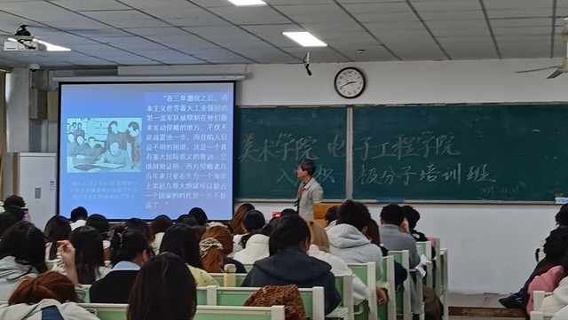 为深入学习贯彻习近平新时代中国特色社会主义思想,传承红色基因,筑牢青年理想信念根基,11月11日,电子工程学院与美术学院联合举办入党积极分子培训班专题党课,特别邀请东南大学马克思主义学院陆华教授担任主讲人。两个学院共140多名入党积极分子、新发展团员以及学生干部代表参加本次学习。