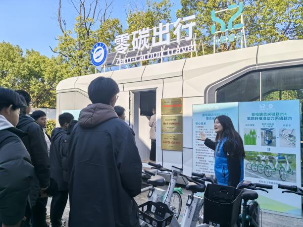 最后,大家抵达“氢”能源补给站展示区。志愿者围绕氢能源的特性、提取技术及绿色应用前景展开讲解,不仅传递理论知识,更让同学们亲手触摸固体氢、近距离观摩氢提取实验仪器。在触摸与观察的双重体验中,同学们对绿色能源的认知不断深化,切实感受到科技赋能清洁未来的重要价值。
