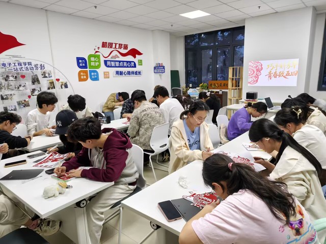 为迎接五一国际劳动节与五四青年节,传承中华优秀传统文化,弘扬五四精神,强化劳动教育育人实效,4月27日晚,电子工程学院在F区一站式学生社区举办“巧手刻芳华,青春致五四”主题刻纸活动,引领青年学子在非遗实践中感悟青春使命、厚植家国情怀。