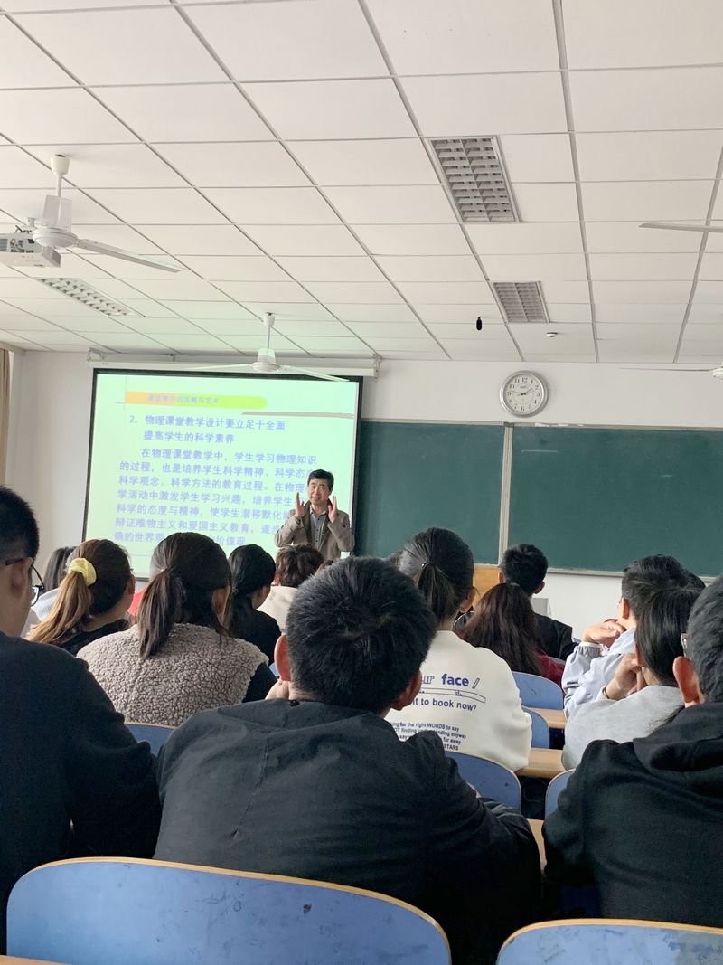 10月26日下午,南京市教学研究室高中物理教研员刘建成老师应邀为电子工程学院2020物理学师范(乡村定向)班级学生做讲座,讲座题目为《课堂教学的策略与艺术》。讲座由物理学教研室主任邵云老师主持,窦瑾院长以及物理师范专业相关老师参加了活动。