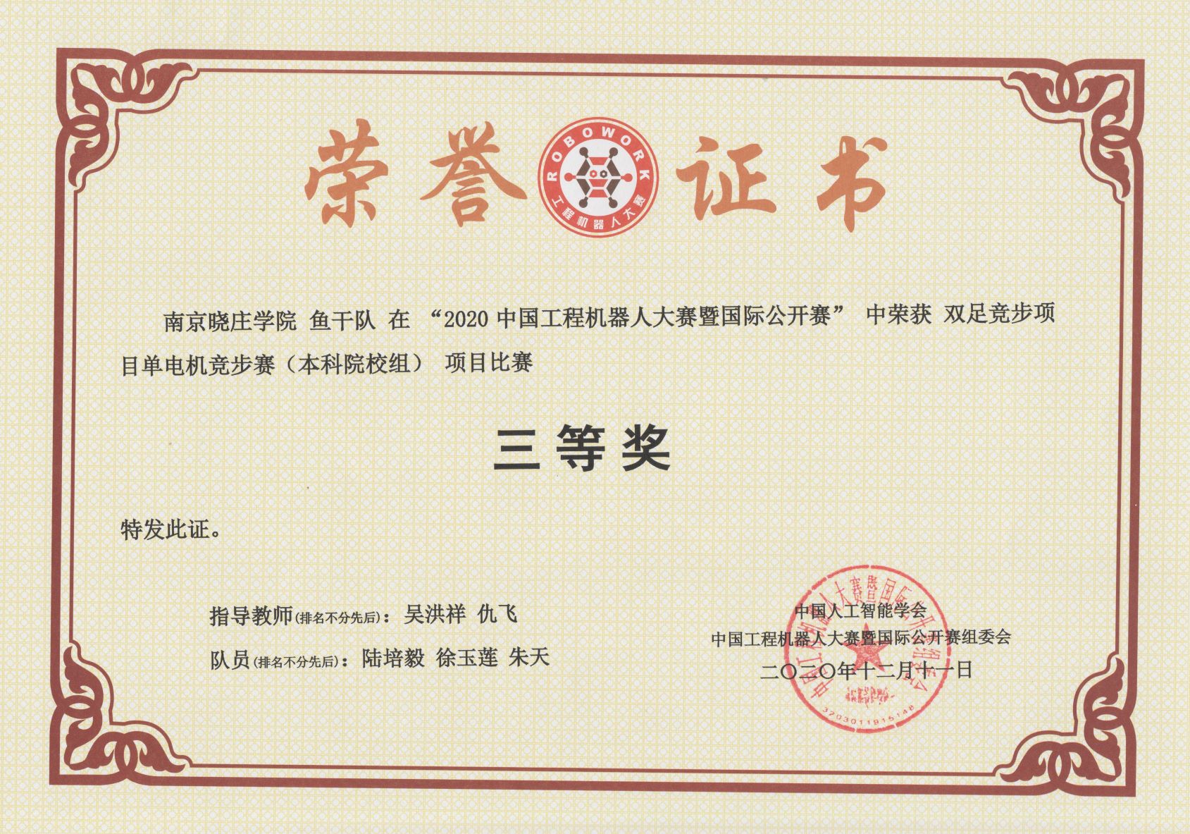 2020年全国工程机器人大赛暨国际公开赛三等奖(一)