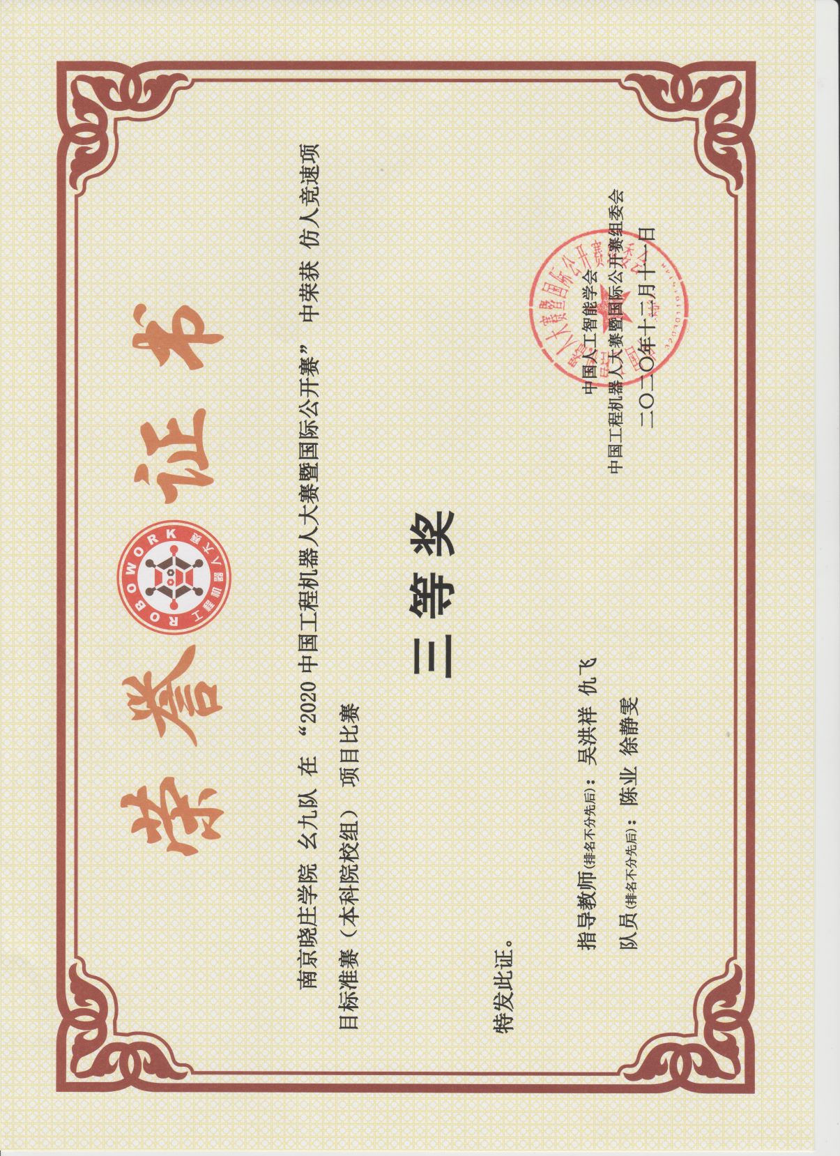 2020年全国工程机器人大赛暨国际公开赛三等奖(四)