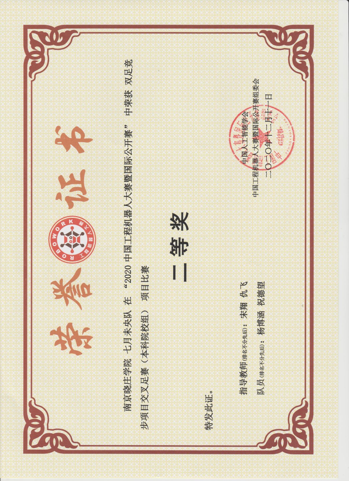 2020年全国工程机器人大赛暨国际公开赛二等奖(一)