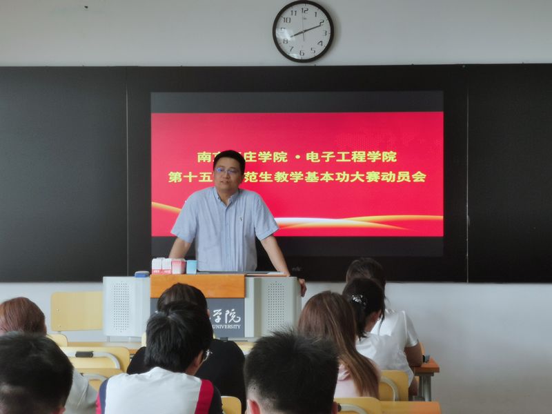 为做好第十五届师范生教学基本功大赛的赛前准备,进一步助推物理学师范生的教学基本功训练,提高师范生教学能力和专业技术水平,6月11日上午,电子工程学院召开2018级物理学师范生教学基本功大赛赛前动员大会。