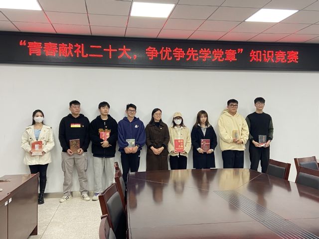 开展一次知识竞赛。为做到以赛促学,以学促知,学生党支部开展了“青春献礼二十大,争优争先学党章”知识竞赛活动,竞赛分为小组必答、小组抢答和个人抢答等三个环节,内容涵盖“党的二十大报告”“中国共产党章程”等知识要点。整场竞赛节奏紧凑,气氛紧张,精彩纷呈。此次知识竞赛活动在学生党员中掀起了学习热潮,营造出“比、学、赶、超”的浓厚氛围。