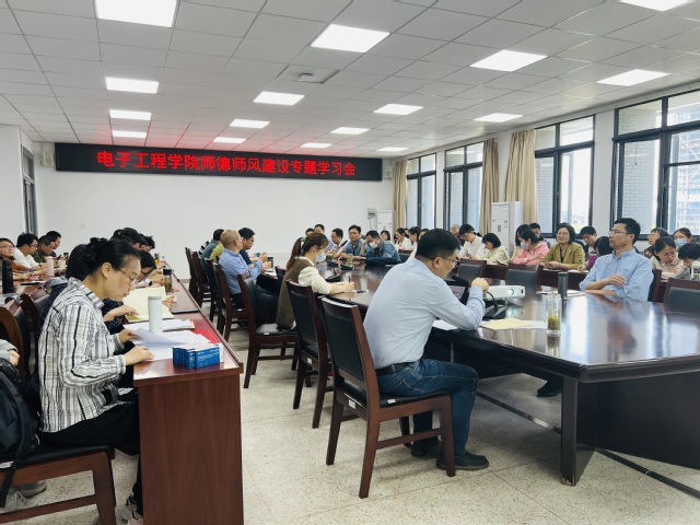 电子工程学院结合学习贯彻习近平新时代中国特色社会主义思想主题教育,深入贯彻落实校党委《关于开展“师德师风建设月”活动的通知》要求,以提高教师思想政治素质、理想信念和职业道德为重点,开展专题教育学习活动,积极推动“党建+师德”建设。原原本本学。通过班子成员领学,全体教师集中学习习近平总书记关于师德师风的重要论述、关于教育的重要论述和全国教育大会精神,学习《关于全面深化新时代教师队伍建设改革的意见》和《关于加强和改进新时代师德师风建设的意见》,以及《中华人民共和国教师法》《高等教育法》《高等学校教师职业道德规范》《新时代高校教师职业行为十项准则》等法律法规。交流研讨学。学院组织教师开展学习交流,谈学习体会,谈如何从自我做起,践行大爱奉献精神,以“四有”好老师标,潜心教书育人,促进学院人才培养质量提升。“沉浸式”参观学。学院组织全体教师拜谒陶行知墓,深切缅怀陶行知先生,参观师德教育馆,重温行知先生创办晓庄师范,为了中国教育事业殚精竭虑的伟大而光辉的教育生涯。榜样示范学。通过集中学习南京晓庄学院师德先进典型宣传片,引导教职工向身边的典型学习。通过邀请专家开展微课制作专题讲座等,开拓教师的视野,加深了教师对微课的认识和理解,为促进我院教师专业发展和教学能力的提升,适应信息技术与教育教学深度融合的趋势。履职践诺活动,全体教职工签订师德师风承诺书。从坚定政治方向、潜心教书育人、关心爱护学生、遵守学术规范以及师德红线底线等方面为全体教职工明确了方向。